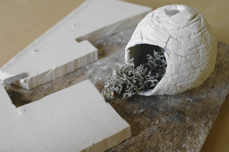 Continuing the shell structure investigation I made these small experiments with clay and reinforcement. I like the repetitive cracks that the reinforcement makes in the structure. These cracks could be used for letting light in or vegetation to grow, for climbing on...